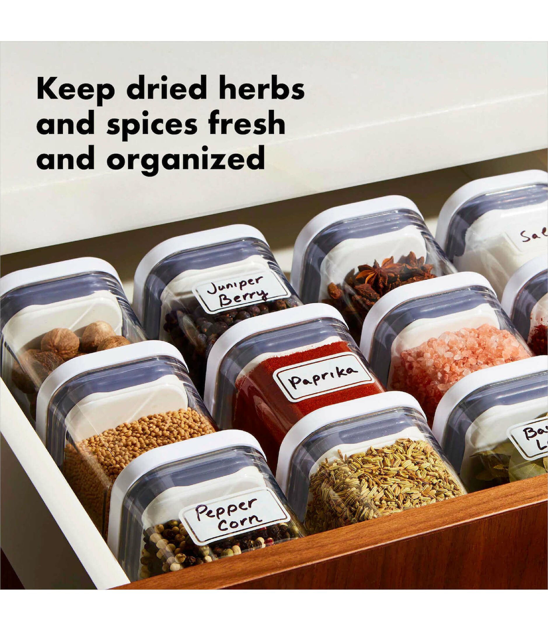 La tapa se abre y cierra presionando el botón, que además funciona como asa para levantarla. Son aptos para lavavajillas, libres de BPA y muy fáciles de limpiar, lo que asegura practicidad en el uso diario. Aunque están diseñados para especias y hierbas, también pueden usarse para organizar otros espacios del hogar como cajones de escritorio, baños o incluso áreas de juegos.