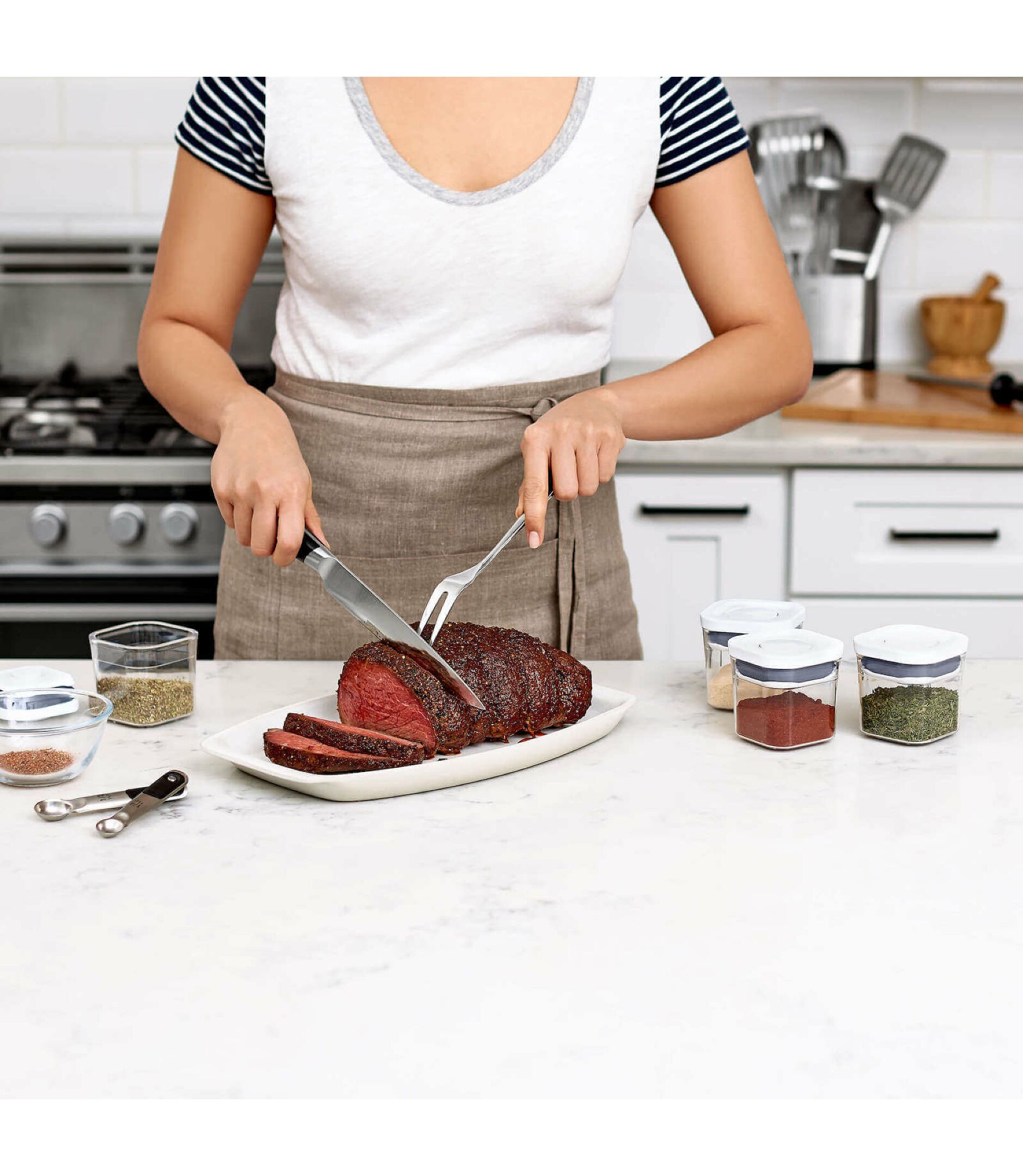 El set de recipientes OXO Good Grips Mini POP de 4 piezas (11234300) está pensado para quienes buscan mantener especias y hierbas secas siempre frescas, ordenadas y a mano. Cada contenedor tiene 0,2 litros de capacidad y cuenta con el característico botón de sellado hermético de la línea POP, que asegura la frescura del contenido y evita la entrada de aire y humedad. Su diseño apilable y eficiente en espacio permite combinarlos con el resto de la familia POP, optimizando el almacenamiento en cajones, estantes o la alacena.