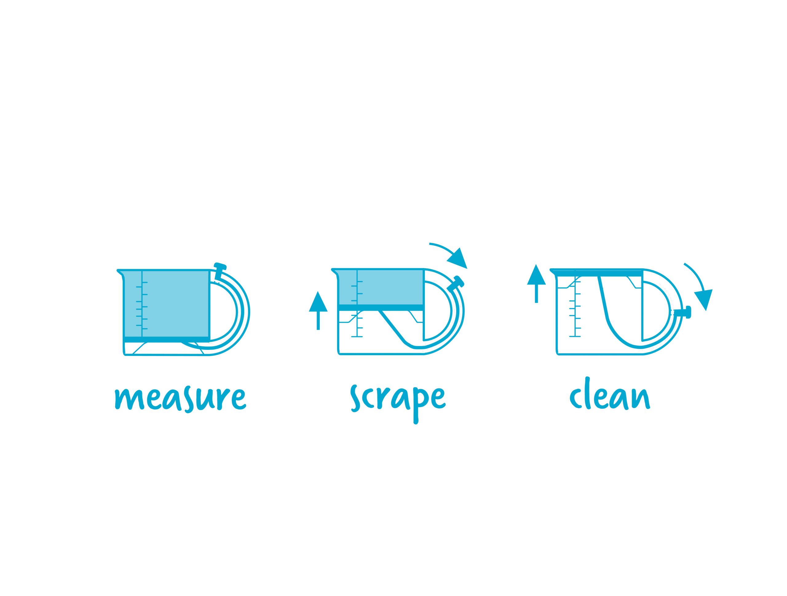 La Taza Medidora Ajustable es una herramienta "4 en 1" que resuelve el problema más común al medir ingredientes pegajosos. Olvidate de luchar con la mantequilla de maní, la miel o la mayonesa; su base móvil empuja el contenido hacia arriba, dejando la taza completamente limpia al vaciarla.